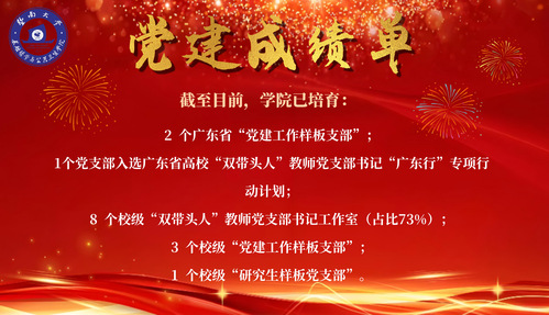 学院党委始终坚持以习近平新时代中国特色社会主义思想为指导,围绕立德树人根本任务,用更高要求、更高标准、更高质量的党建工作成效,促进学院各项事业发展;在2025年成功入选第五批广东省“党建工作标杆院系”培育创建单位。截至目前,学院党委已培育创建:
